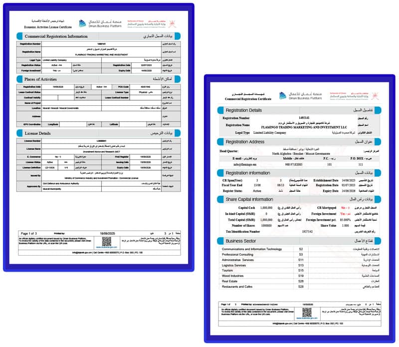 فلامینگو در تمام مقررات مصوب مقامات رسمی سلطنت عمان تخصص کامل دارد و با همکاری وکلای باتجربه عمانی، خدمات با بالاترین کیفیت و کاملاً مطابق با قانون را به شما ارائه میدهد.
